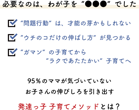 読むだけでも、お子さまが今より発達・成長し、ママとお子さんの毎日がもっと笑顔で溢れるヒントをつかんでいただけると思います。